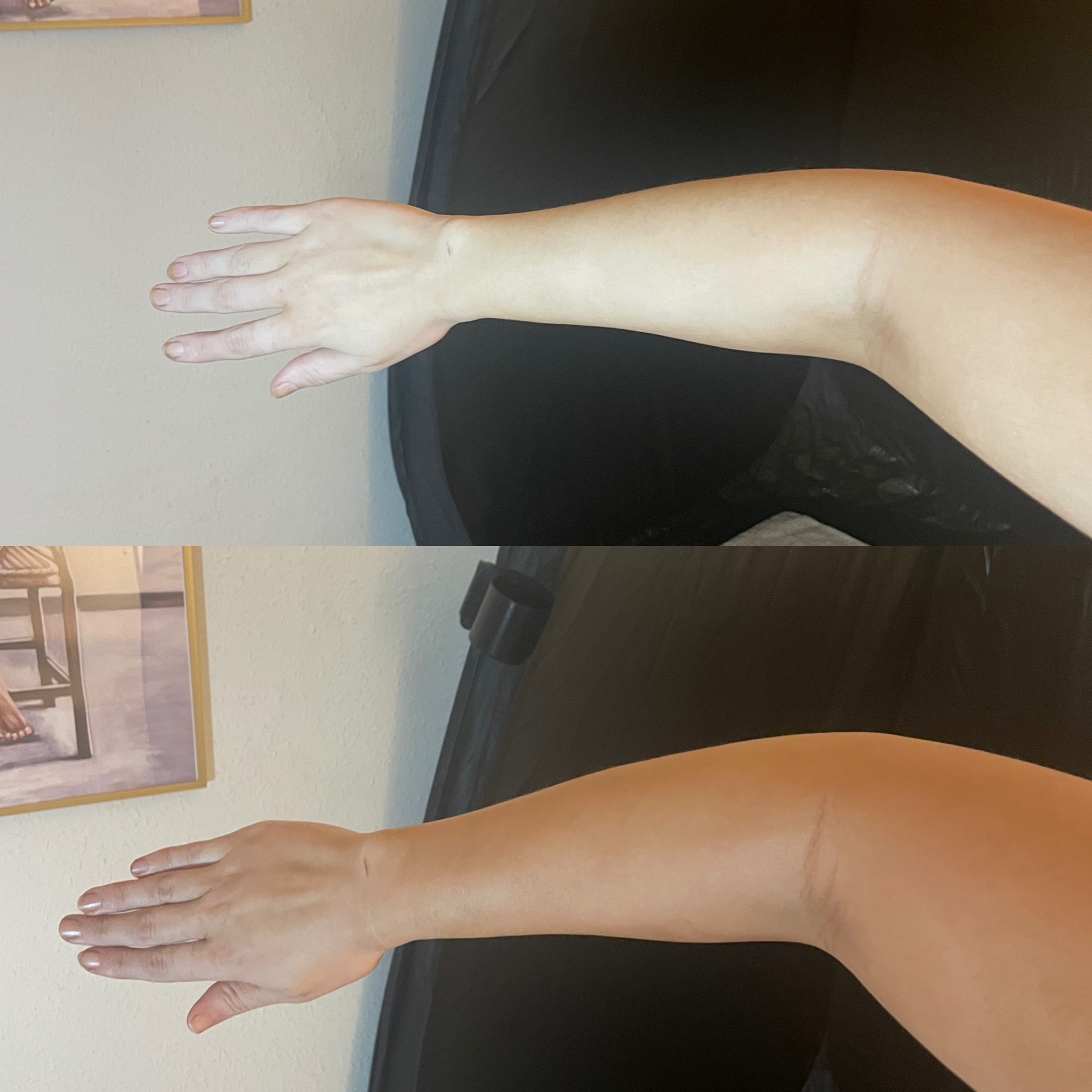 Fugt huden dagligt med en god bodylotion for at farven holder længst muligt. 7-10 dage ca.